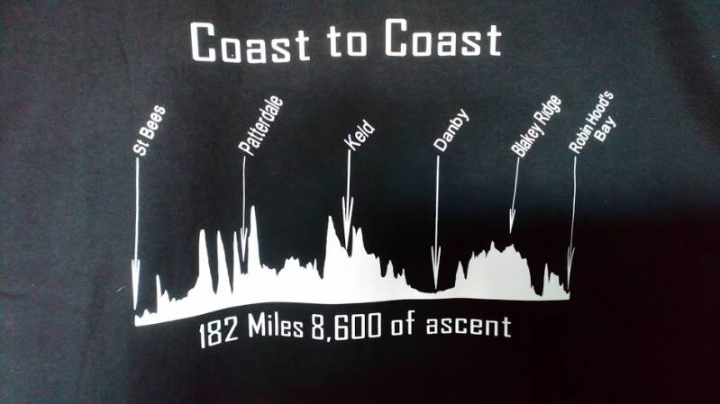 In recognition of this breath-taking route devised by Alfred Wainwright, we have for sale a Coast to Coast T—Shirt that shows the walk which passes through three of England's most beautiful National Parks taking you on a tour of some of the most incredible scenery in the country.